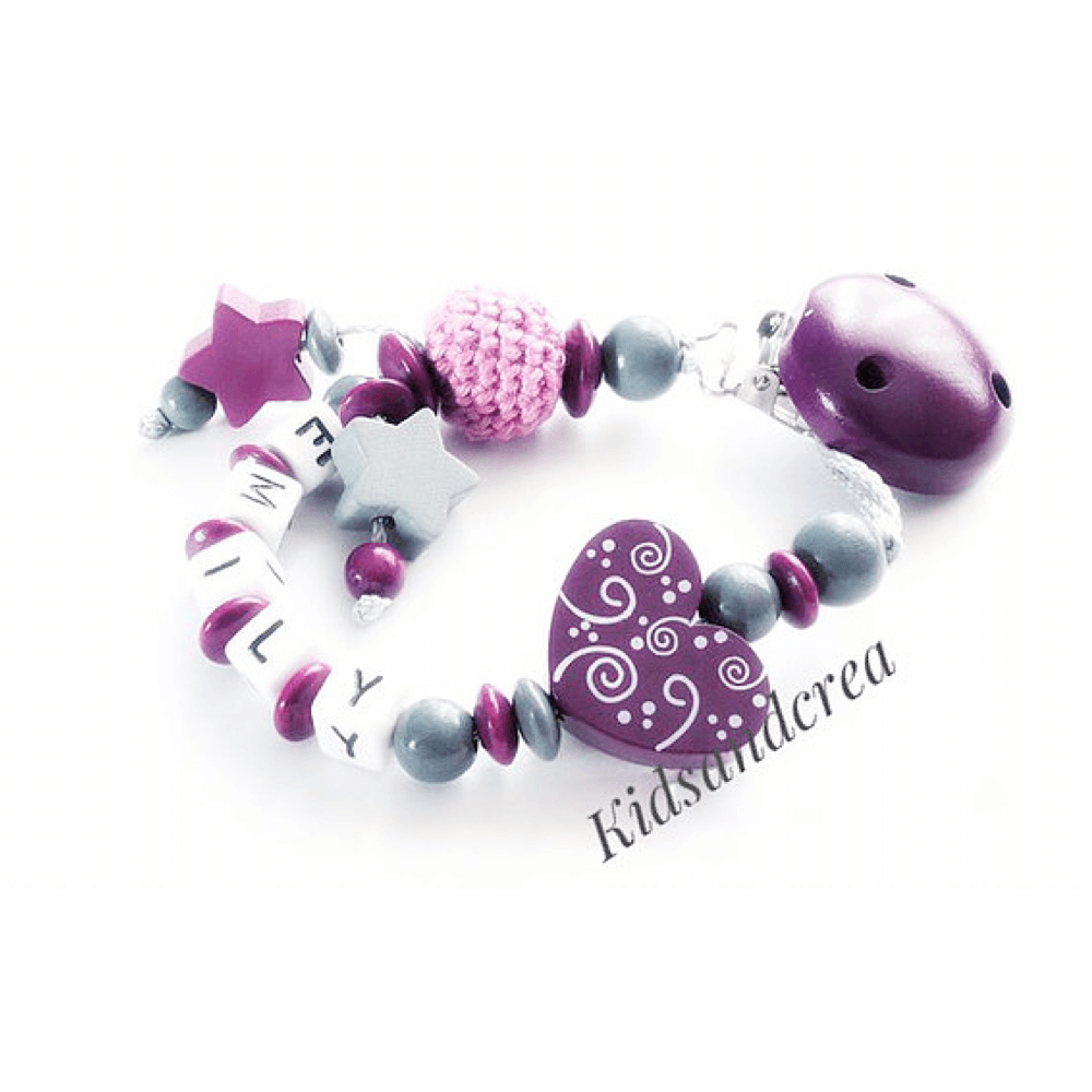 Attache tétine bois violet