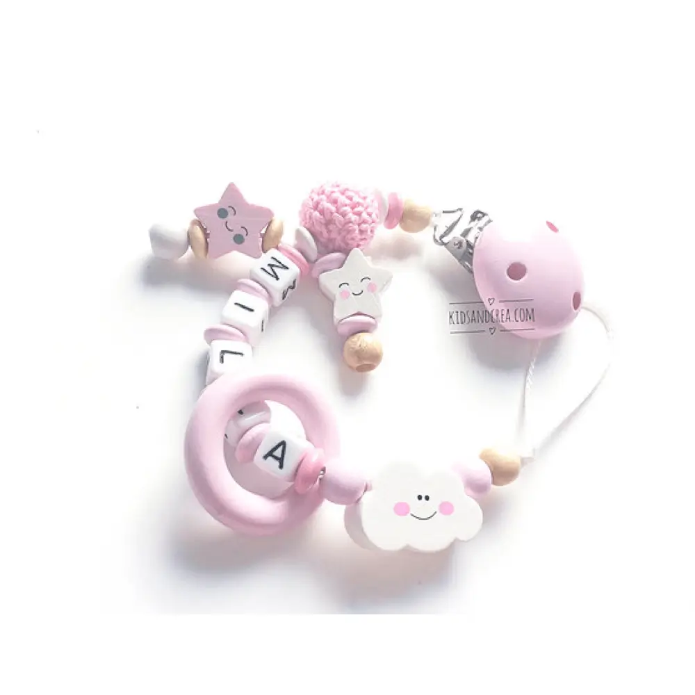 Offrez à votre bébé un accessoire aussi unique que lui avec notre attache tétine personnalisée sourire rose. Conçue entièrement en bois naturel, cette attache tétine est le choix parfait pour les parents soucieux de la sécurité et du style de leur enfant.