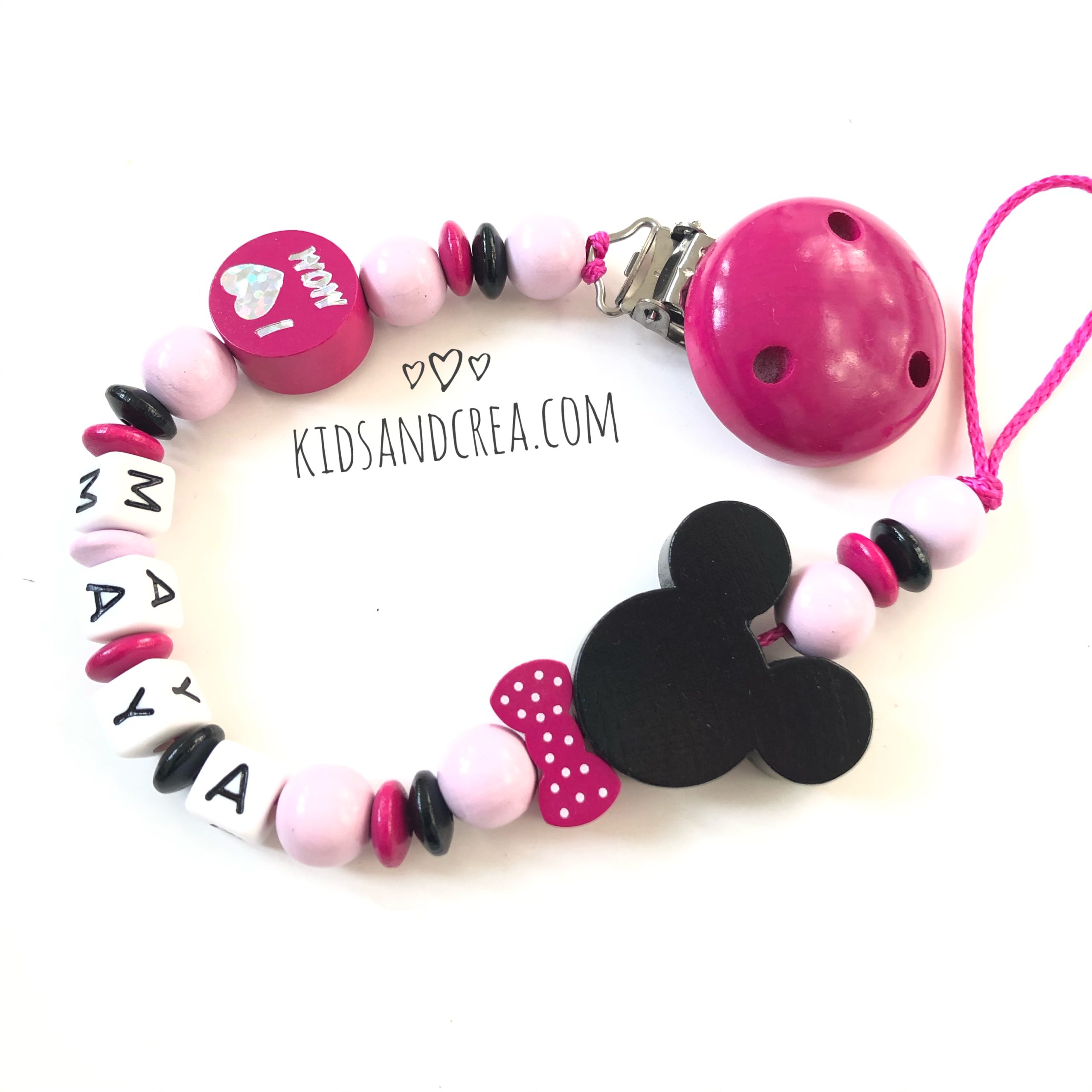 Attache tétine prénom bois love– La magie disney au cœur du naturel