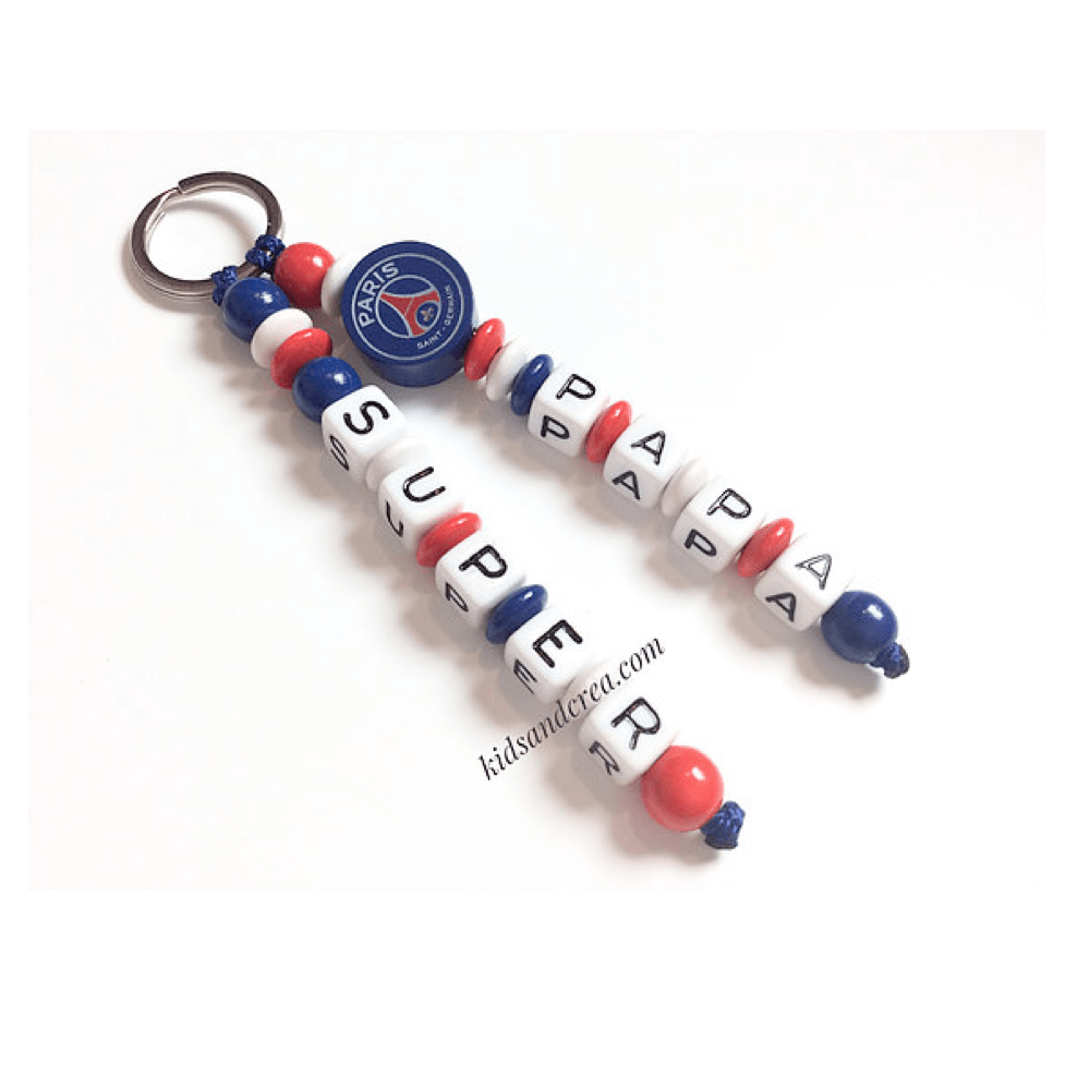Porte clés homme prénom perle fabriqué d’éléments en bois. Nous personnalisons les porte clés avec le prénom de votre enfant. Ainsi, la personnalisation au prénom de votre enfant en fait un accessoire et un cadeau personnalisé original.Nous confectionnons nos porte clés en France et de manière artisanale.