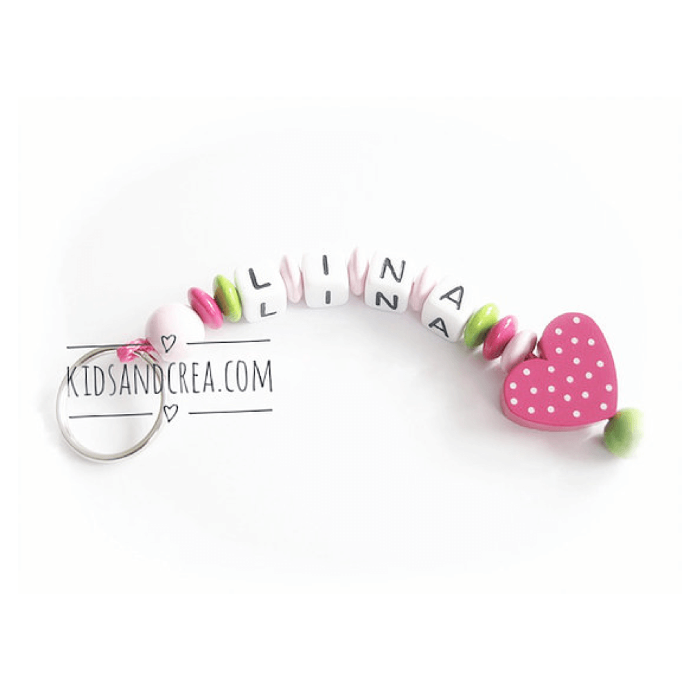 Porte clés prénom perle fabriqué d’éléments en bois. Nous personnalisons les porte clés avec le prénom de votre enfant. Ainsi, la personnalisation au prénom de votre enfant en fait un accessoire et un cadeau personnalisé original.Nous confectionnons nos porte clés en France et de manière artisanale.
