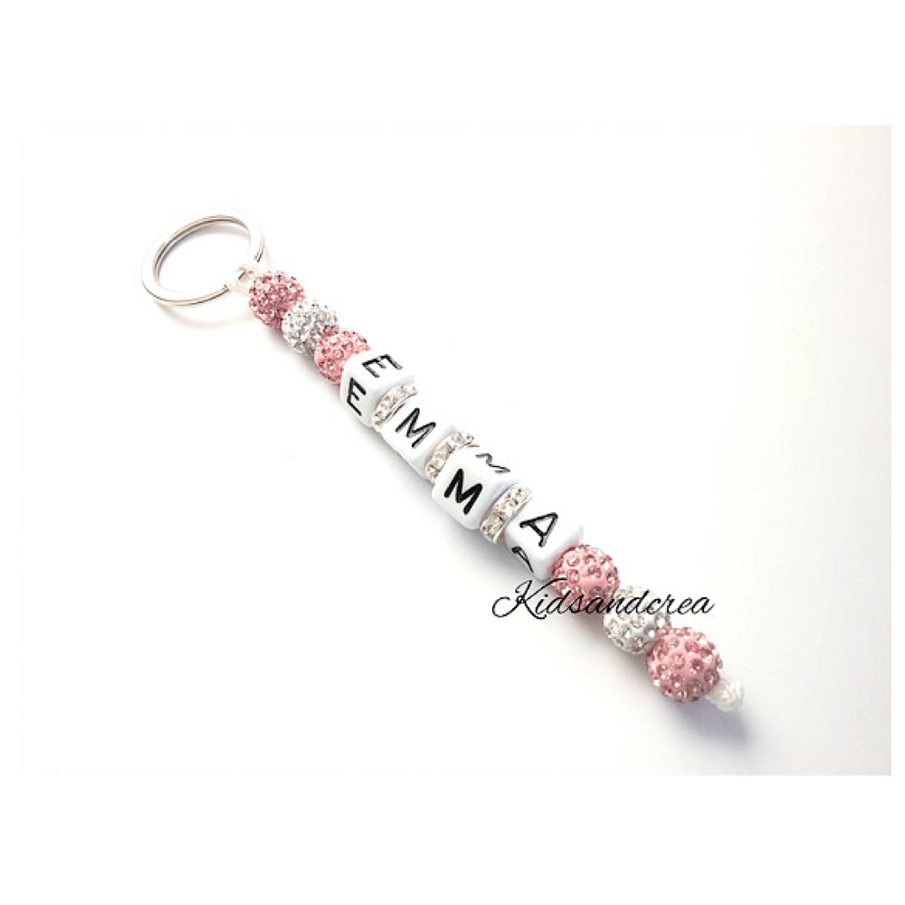 Porte clés prénom perle fabriqué d’éléments en bois. Nous personnalisons les porte clés avec le prénom de votre enfant. Ainsi, la personnalisation au prénom de votre enfant en fait un accessoire et un cadeau personnalisé original.Nous confectionnons nos porte clés en France et de manière artisanale.