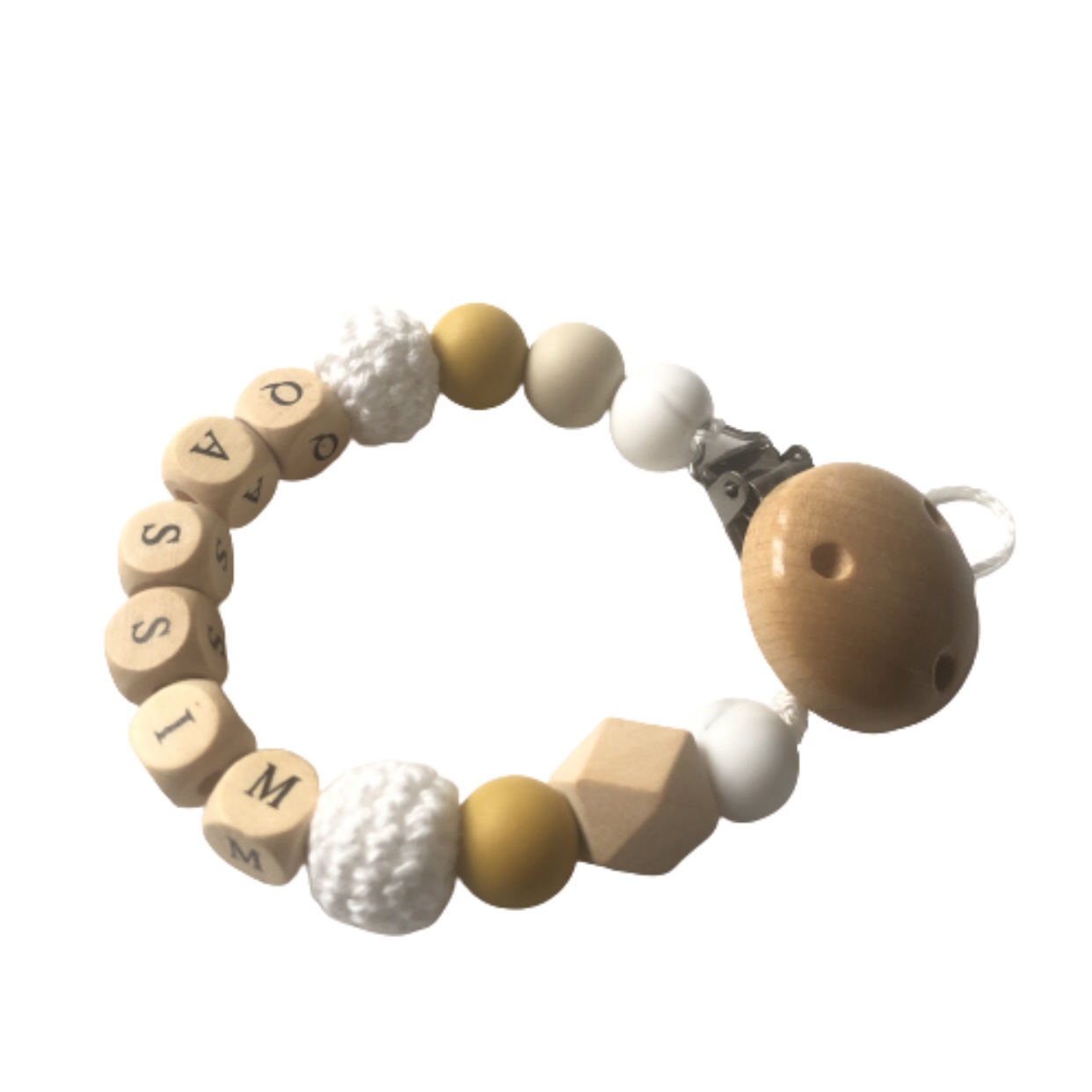 Cette attache tétine silicone personnalisée Qassim est conçue pour éviter que la tétine ne tombe au sol ou ne se perde, à la maison comme en promenade. Elle permet de garder la sucette propre et accessible tout au long de la journée, tout en apportant une touche esthétique et personnalisée grâce au prénom de l’enfant.