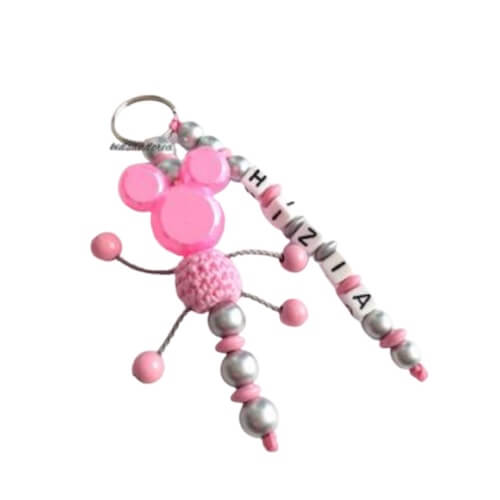 Porte-clés Minnie personnalisé – Perles rose & argent
