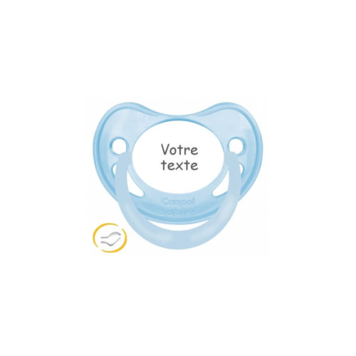 Tétine personnalisée bleu pastel. Pour remplacer le pouce dans la bouche de votre enfant offrez lui une tétine bébé personnalisée fille ou garçon. Une succion sans risque grâce à une tétine de qualité. L’embout existe dans 2 tailles différentes 0-6 mois ou 6 mois e avec prénom que propose le site kidsandcrea.com. Cette tétine est de haute qualité car elle est fabriquée en silicone et de très haute résistance. Vous pouvez la stériliser sans risquer de l’abîmer. Cette sucette se compose d’une valve spécialement conçue à la forme d’un mamelon maternel ainsi que d’une soupape de sécurité. Ce design apporte le confort et une utilisation sans danger pour bébé.