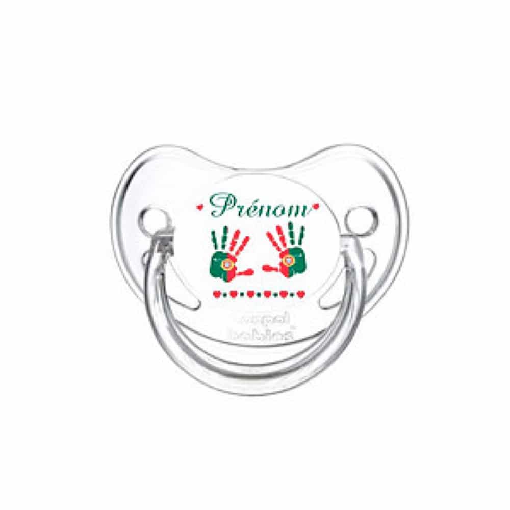 Tetine prénom avec le prénom de votre choix. La tétine est fabriquée en silicone. Tétine garantie sans BPA sans PVC ni phtalate non toxique et sans solvant. Résistante à la salive et à la sueur elle est conforme à la norme européenne EN 1400.